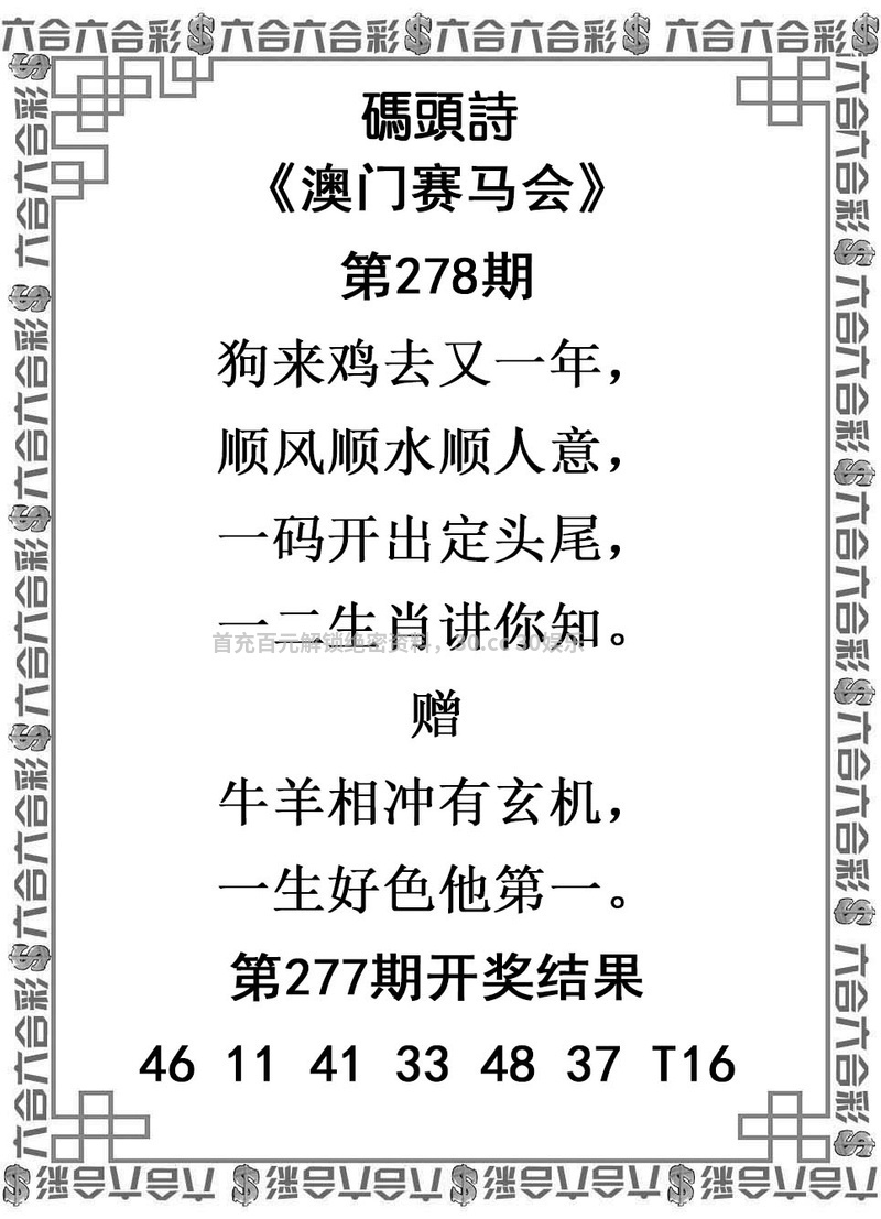 278期:✈️【澳彩36码】✈️中特开:虎28准 |
