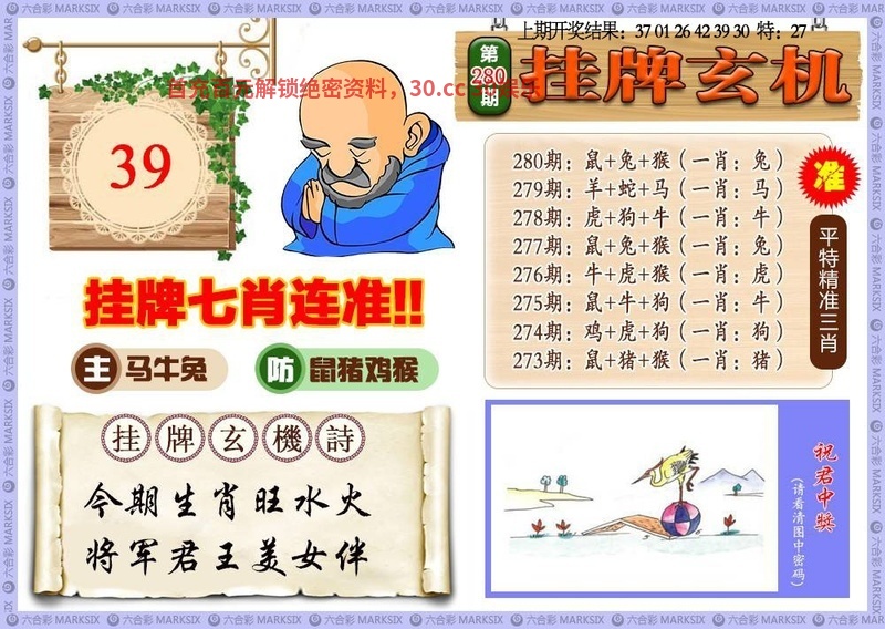 280期七肖 | 鼠羊马鸡蛇牛猪 | 开:鼠42 |