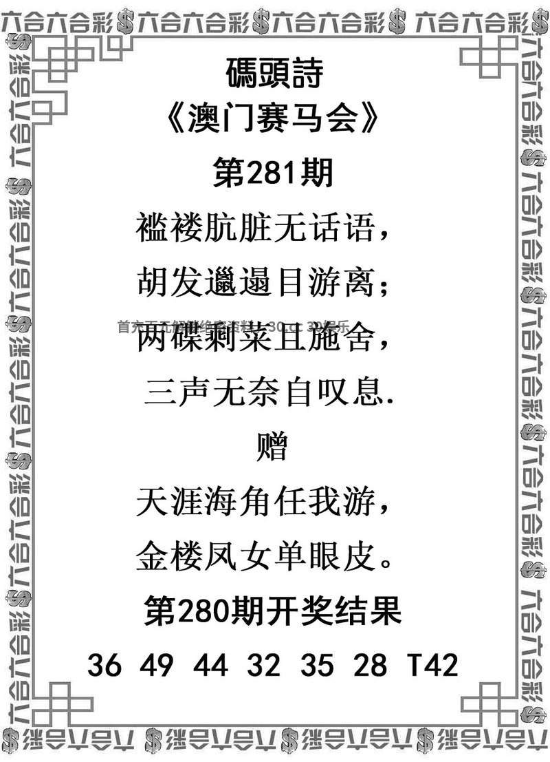 280期⑥码 | 06.42.11.35.36.48 | 开:鼠42 |